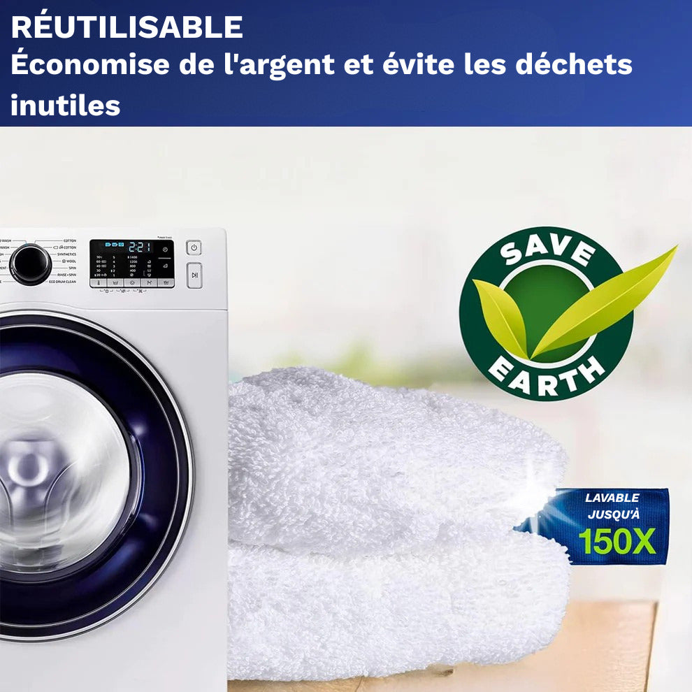 Clean'Floor™ est la solution idéale pour ceux qui privilégient un nettoyage efficace et durable. Ces housses résistantes s'adaptent à la plupart des serpillières (y compris les serpillières Sweeper er et Sweeper XL) et offrent une solution pratique pour le nettoyage humide ou le balayage à sec. Dites adieu aux housses jetables et profitez de sols plus propres avec moins de déchets, de manière pratique et écologique.